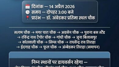 बिलासपुर, 14 अप्रैल 2026: डॉ. भीमराव अंबेडकर जयंती के मौके पर मंगलवार को बिलासपुर में भव्य रैली निकाली जाएगी। इस...