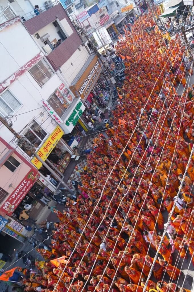 खास बात यह रही कि 15,000 से अधिक महिलाओं ने एक ही रंग की साड़ियाँ पहने और पूरे अनुशासन के साथ कलश उठाकर यात्रा में शामिल हुईं, जिससे दृश्य और भी प्रभावशाली बन गया। आयोजन समिति का कहना है कि इस तरह की महाकलश यात्रा इतिहास में शायद ही पहले किसी धार्मिक आयोजन में देखी गई हो।